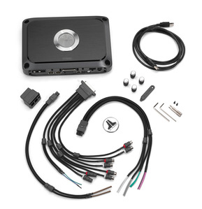 Förstärkare inkluderar: Strömkontakt för 20mm2 kabel, Kontakt för lågnivå in/ut, Kontakt för högtalarkabel, Kontakt för subwoofer,  1,8m A/B USB-kabel.